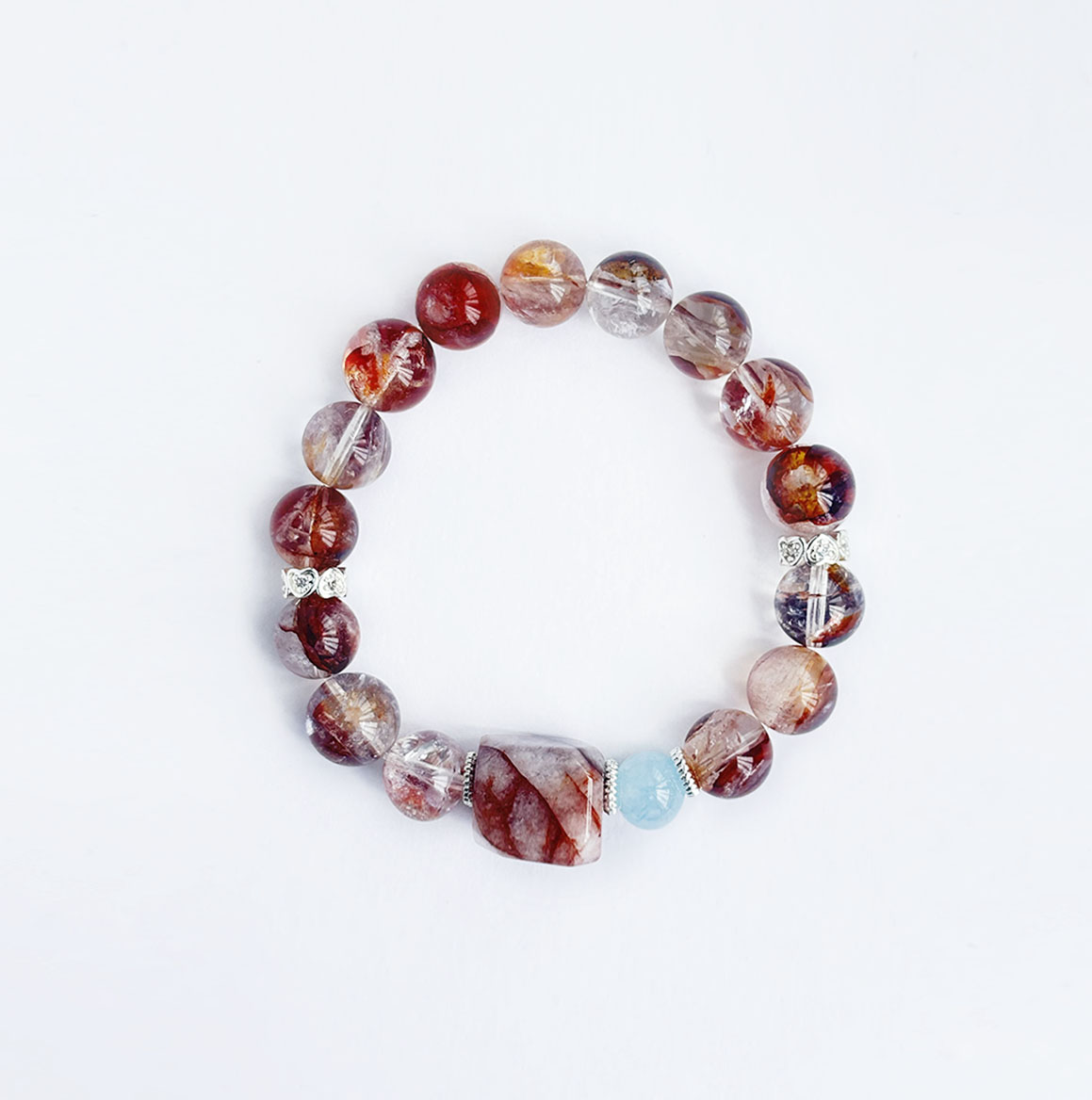 “The fiery essence of Red Aventurine (Fire🔥) is tempered by the calm intellect of Aquamarine (Water💧), steering clear of impulsive decisions while releasing pent-up emotions. This synergy ignites fighting spirit, enhances approachability, expands social reach, rekindles vitality, and shatters the shackles of burnout.
